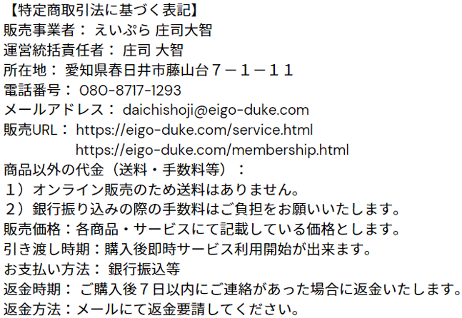 特定商取引法に基づく表記